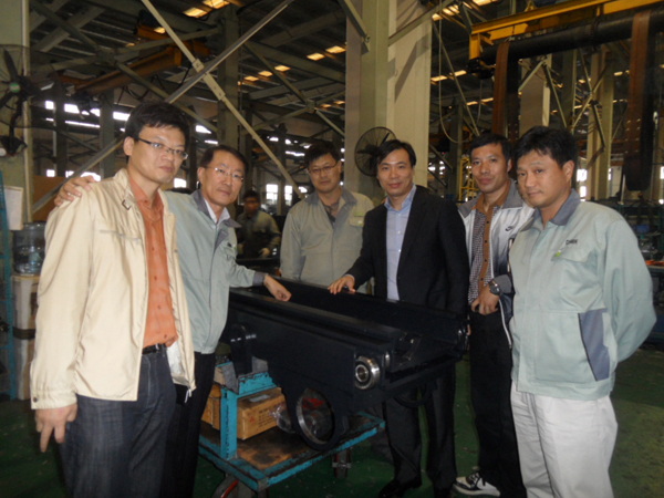 2013年11月6日,中天公司總經(jīng)理受邀參加青島克拉克物流機械有限公司叉車主缸交付裝配儀式,并與青島克拉克總經(jīng)理郭利鎬先生在生產(chǎn)現(xiàn)場合影留念。